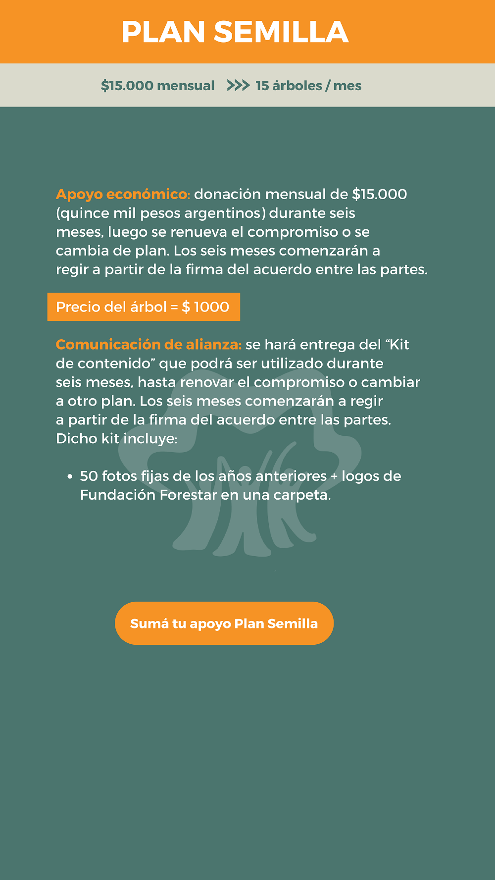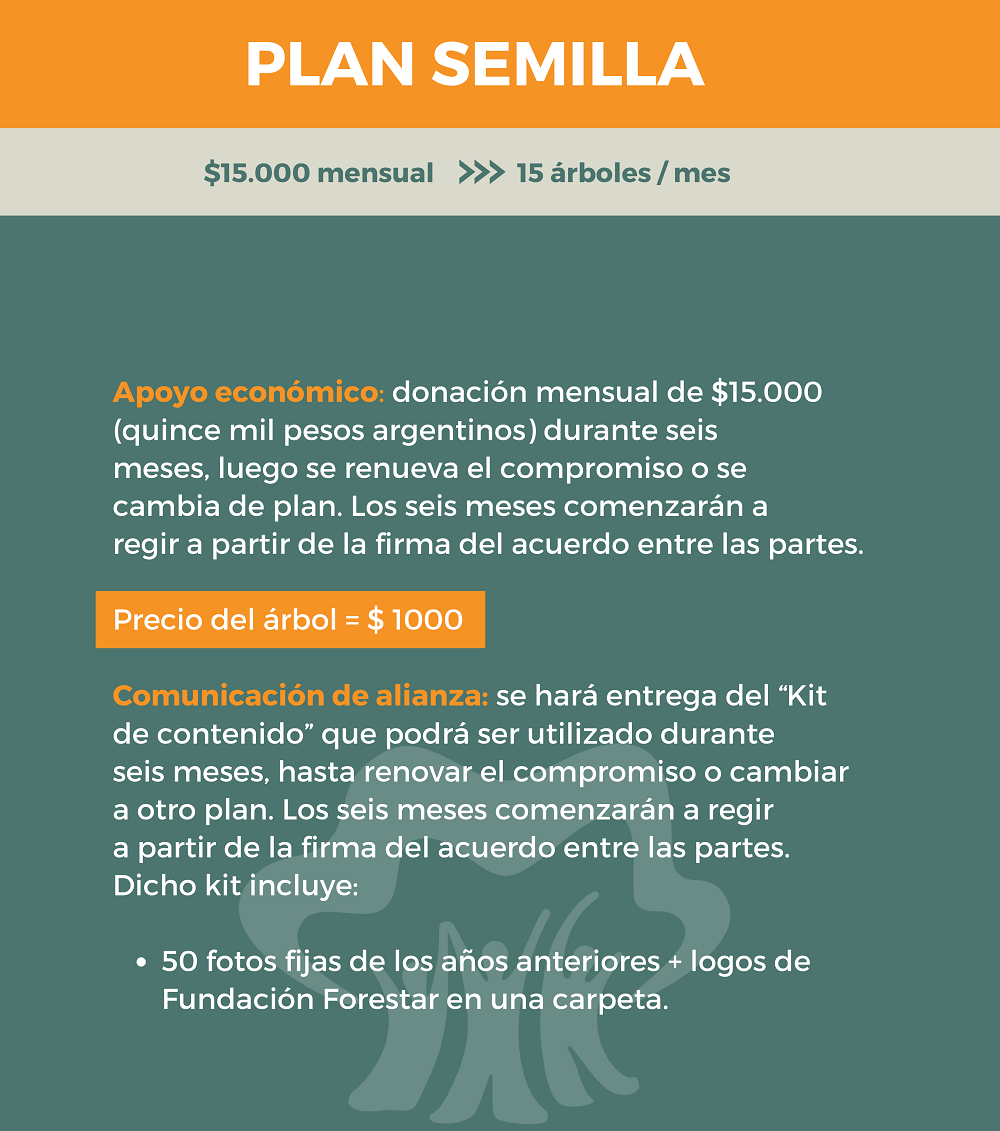 Mediante esta categoría la empresa se compromete a donar una determinada cantidad de árboles por venta realizada. La cantidad se determinará en el momento de realizar el convenio. La donación es mensual acorde a ventas durante seis meses, luego se renueva el compromiso o se cambia de categoría. Los seis meses comenzarán regir a partir de la firma del acuerdo entre las partes.
